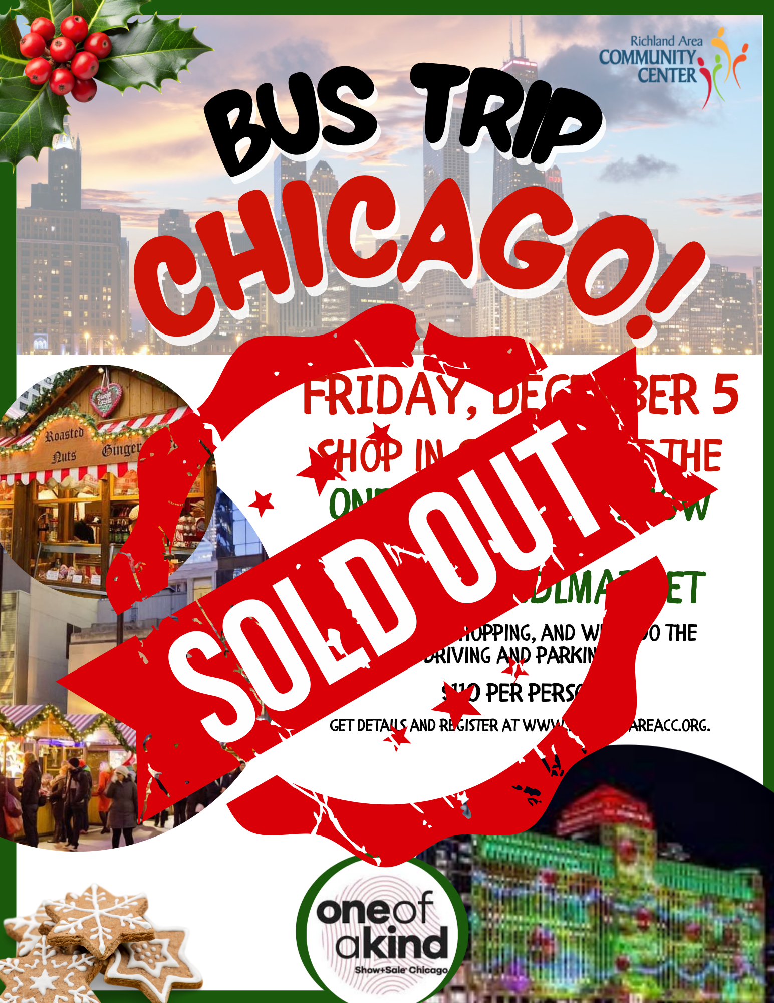 Join the Richland Area Community Center as we adventure to Chicago during the holiday season for the beloved One-of-a-Kind Show and the highly-rated Christkindlmarket, known for holiday gifts, food and spirits - or explore on your own!