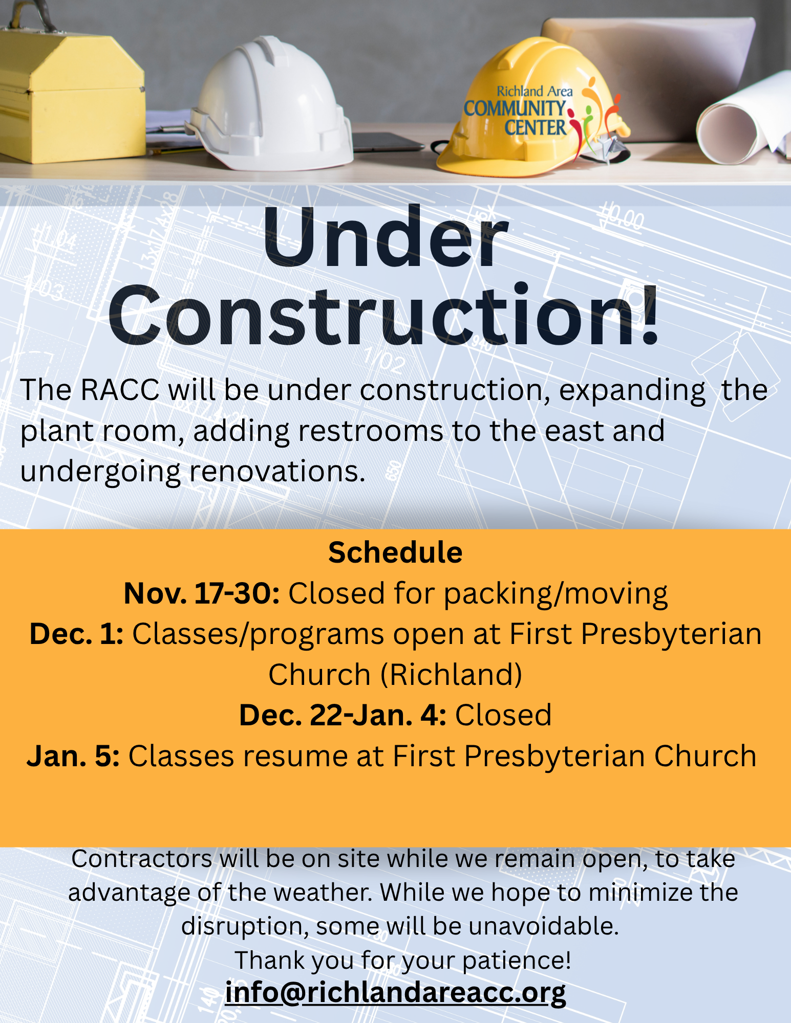 The RACC is undergoing renovations and will temporarily relocate to First Presbyterian Church starting Dec. 1.