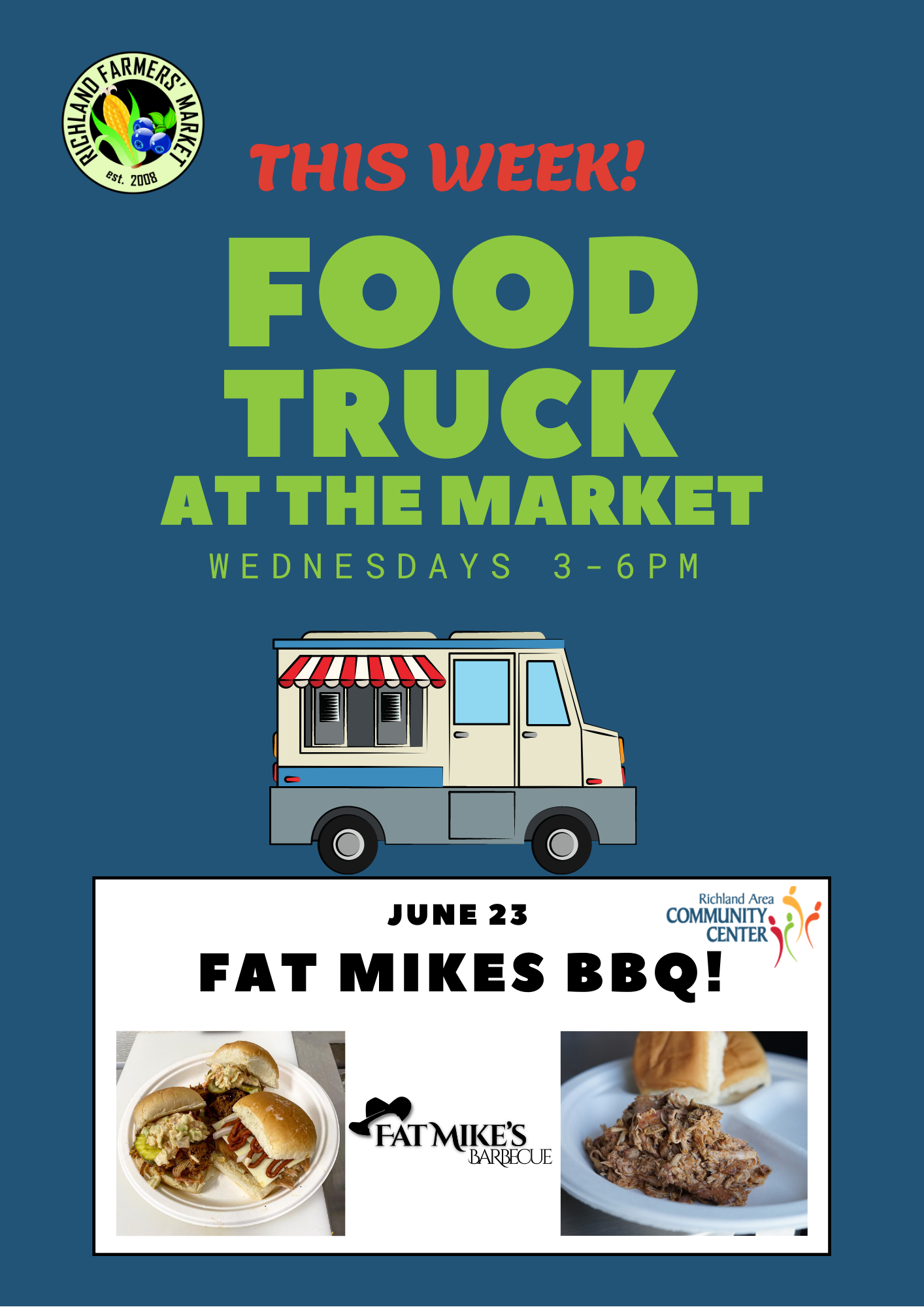 Richland Area Community Center 9400 East CD Avenue, Richland, MI, United StatesEnjoy delicious BBQ and shop the Richland Farmers' Market