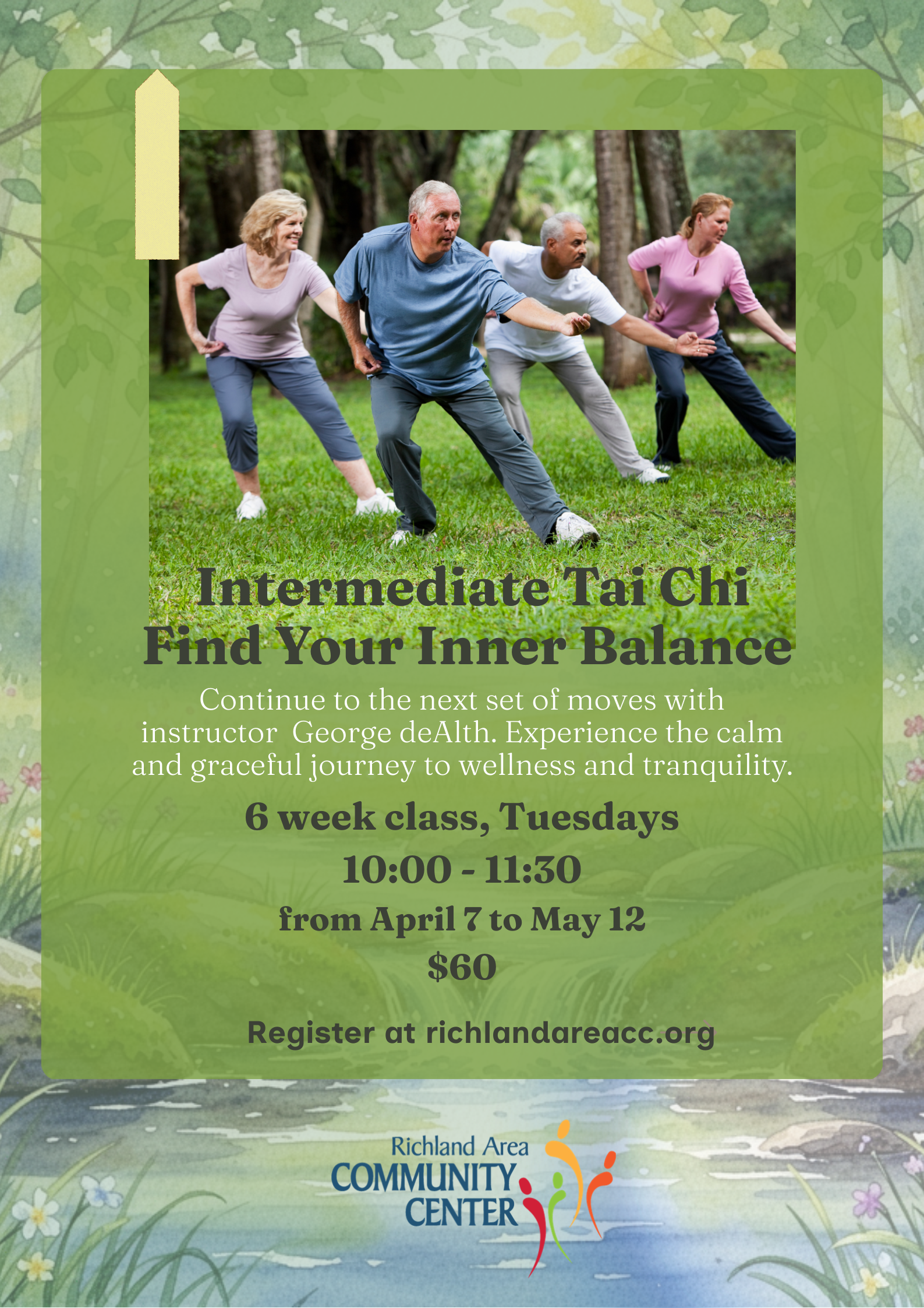 Experience the benefits of Tai Chi, Wednesdays! This class will cover some of the foundations of the Tai Chi form and the first 17 moves of the 108 move Tai Chi set.